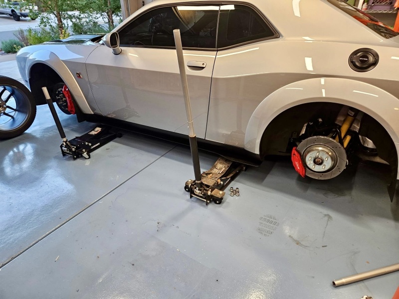 I have a 2021 SPWB. I need to rotate the tires (Haven't done it since I bought the car). Went to Les Schwab but they said it sits to low (H&R lowering springs installed). so my question is, can I use my floor jack and raise it, put blocks of wood under the pinch weld, and rotate the tires myself? It currently also has ZL1 Addons side skirts